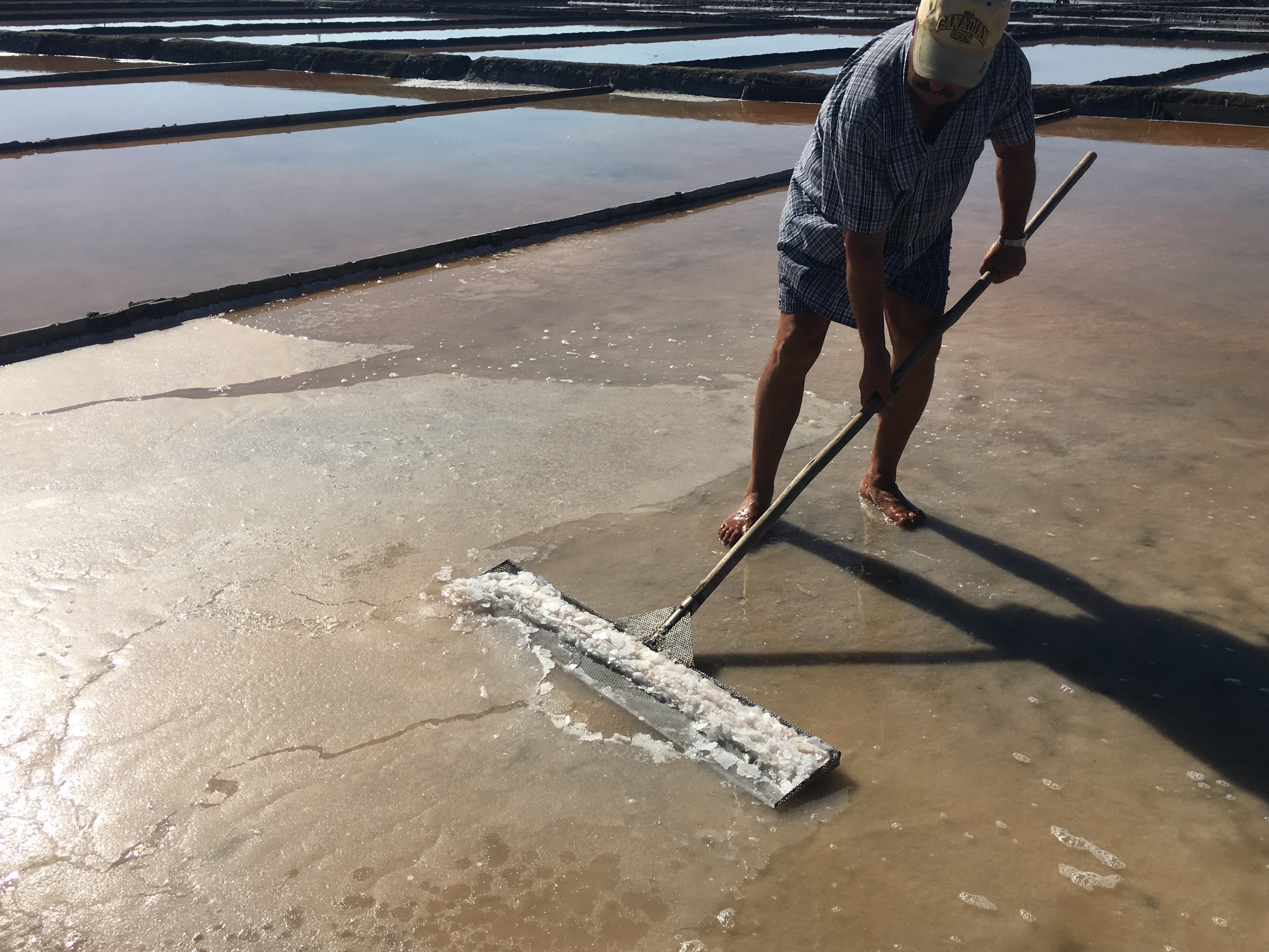 Os nossos marnotos colhem o sal com técnicas tradicionais, sem máquinas.