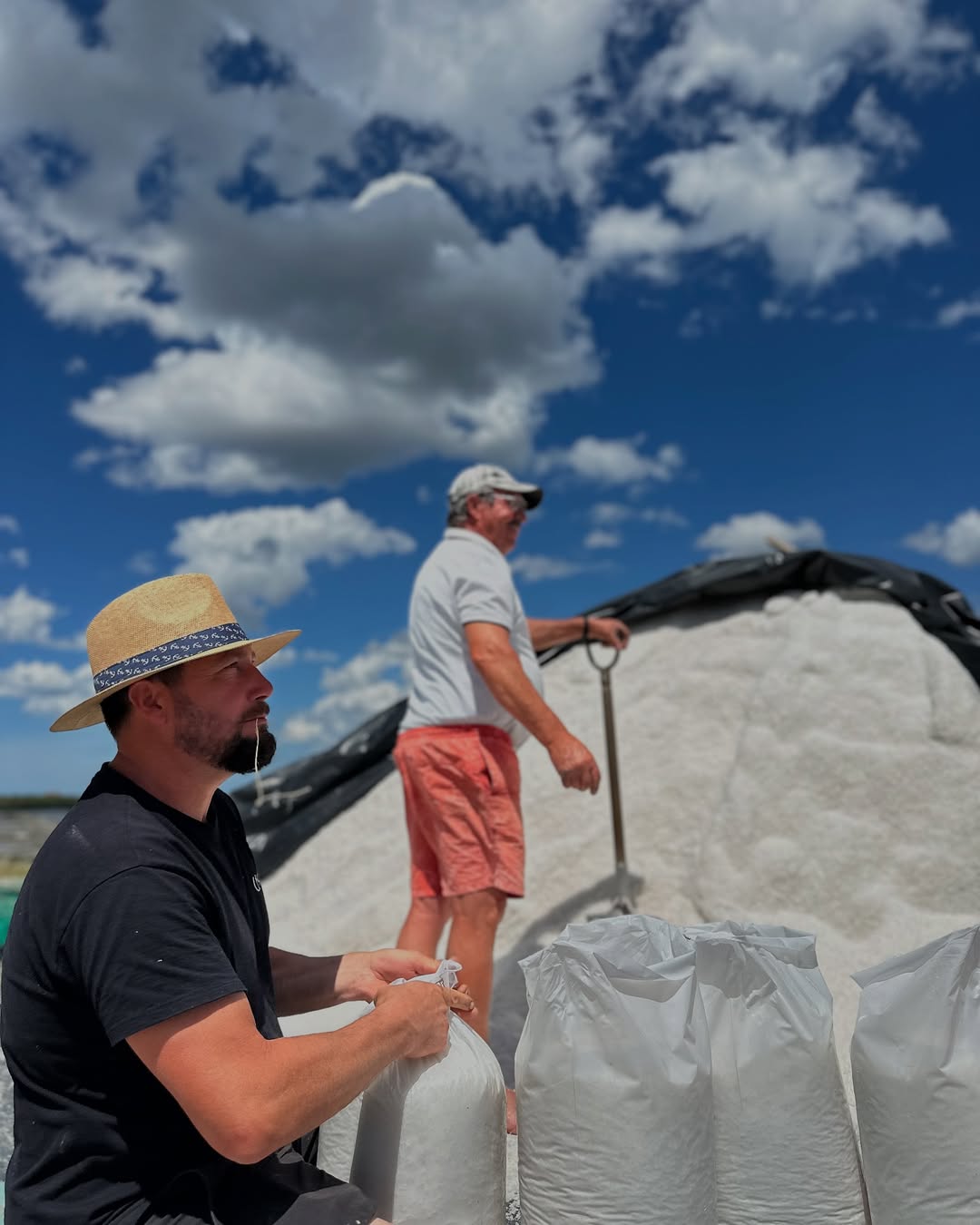 O mais puro e delicado cristal de sal, colhido à mão na superfície da água.